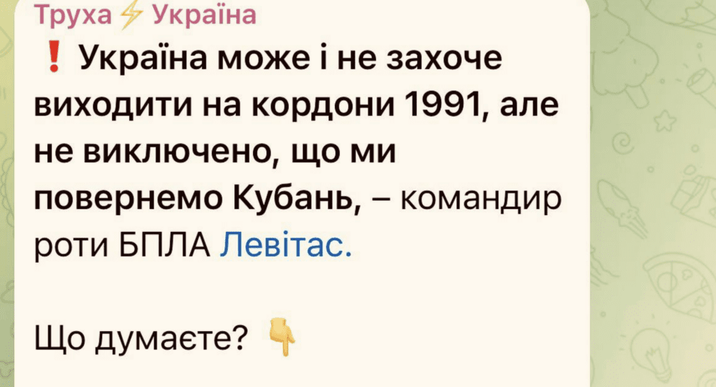 «Украина может и не захочет выходить на границы 1991 года, но не исключено, что мы вернем Кубань».