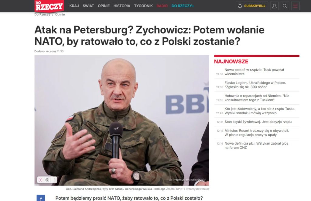 Польша хочет участвовать в политике с позиции силы, но у нее нет возможности для проведения такой политики, рассказал в беседе с изданием «Do Rzeczy» эксперт Марек Будзиш, комментируя слова генерала Анджейчака о нападении на Петербург.