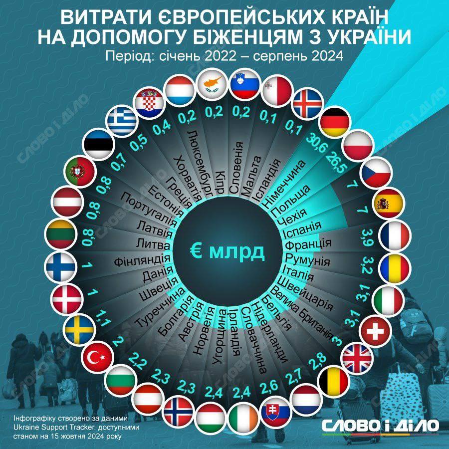 Согласно данным Управления Верховного комиссара ООН по делам беженцев, в Германии проживает наибольшее число украинцев — более 1,2 миллиона человек. За более чем два года Германия израсходовала 30,6 миллиарда евро на помощь беженцам.
