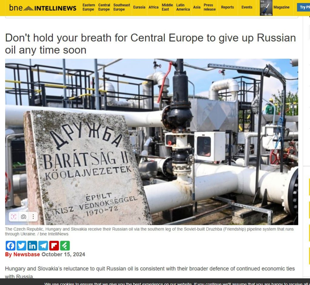 В статье говорится, что Чехия, Венгрия и Словакия в значительной степени зависят от импорта российской нефти. Эти страны не только не отказываются от нее, но и часто вызывают критику со стороны Брюсселя за это.