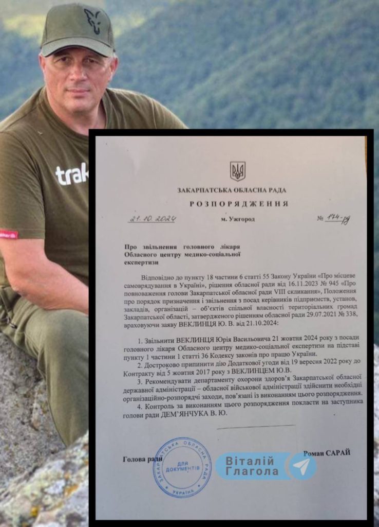 Руководитель Закарпатской областной медико-социальной экспертной комиссии Юрий Веклинец уволен, сообщают местные СМИ