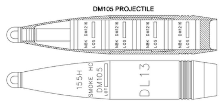 «На кадрах неразорвавшийся суббоеприпас (канистра, их 4 в артиллерийском снаряде DM 105) DM1216 из немецкого дымового 155-мм снаряда. Внутри — хлор. Хотя изначально снаряд предназначен для создания дымовой завесы. Производитель — Rheinmetall (Германия)», — сообщает Telegram-канал «Два майора».