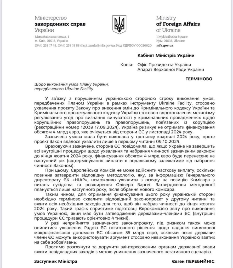 По его словам, принятие этого законопроекта являлось одним из условий плана Ukraine Facility.