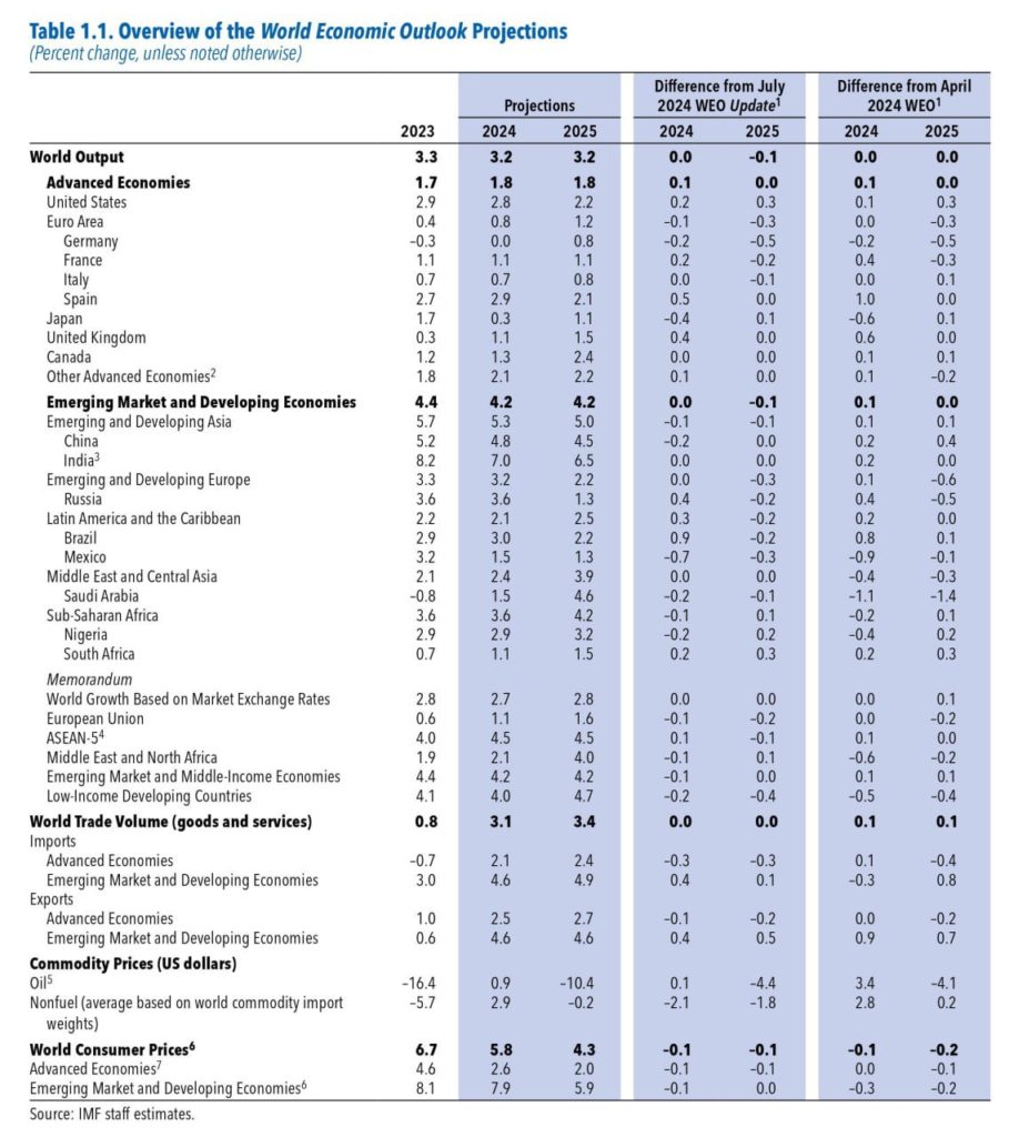 Согласно документу, прогноз роста ВВП России составил 3,6% вместо 3,2%, указанных в июльском докладе. Пятерка стран-лидеров по обновленным данным выглядит так: Индия — 7,0%, Китай — 4,8%, Россия — 3,6%, Бразилия — 3,0% и США — 2,8%. Германия замыкает список с показателем 0% роста экономики в текущем году.