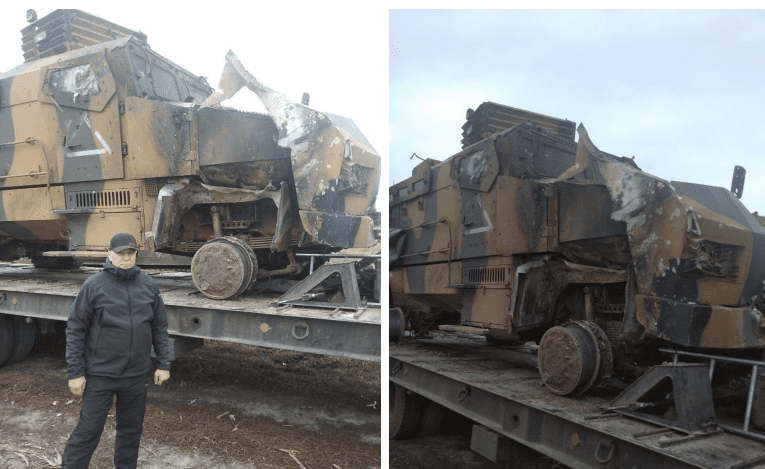 На опубликованных главой района фотографиях — бронеавтомобиль Kirpi, на котором видны следы поражения в передней части кузова.