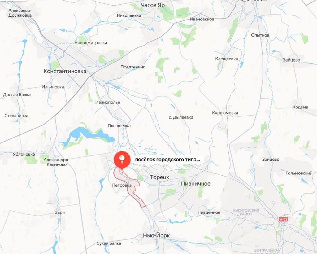 Вооружённые Силы России значительно укрепили свои позиции в районе крупного посёлка Щербиновка, расположенного в ближайшем пригороде Торецка. Об этом сообщают СМИ.