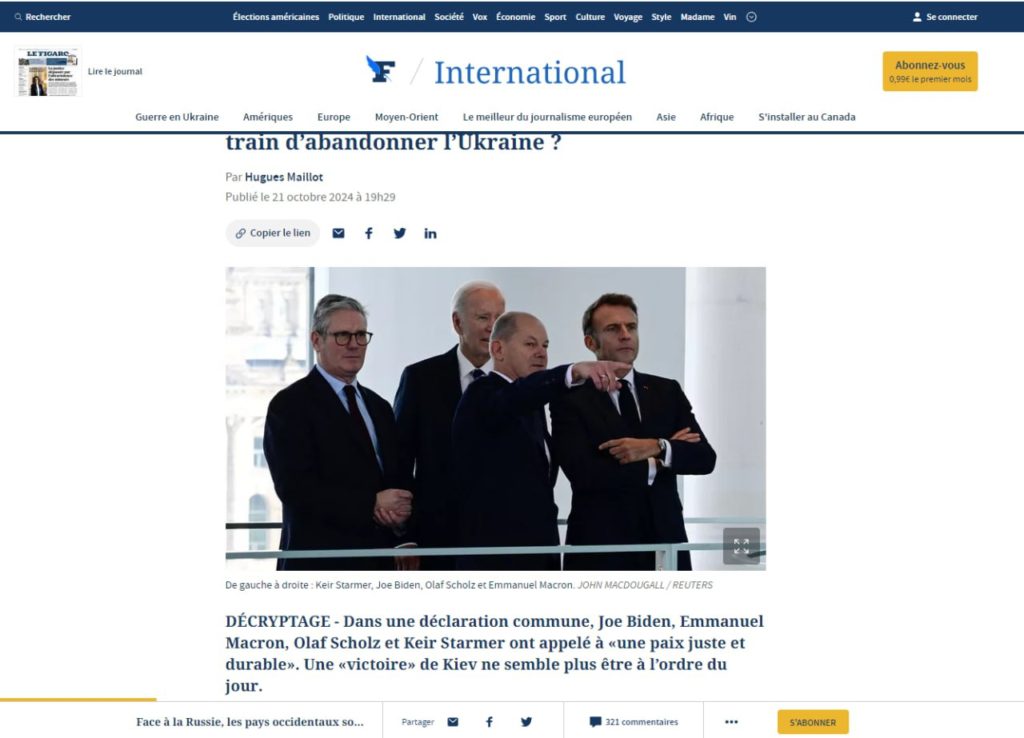 Как пишет газета Le Figaro, уставшие от проблем Украины, лидеры ведущих европейских стран во всю говорят о мире.