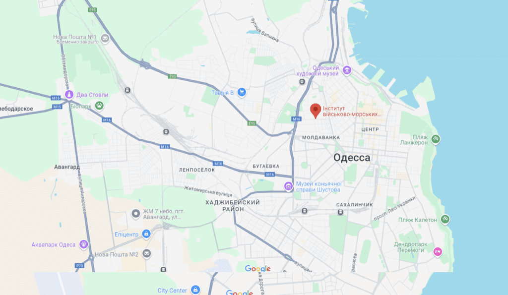 А вот институт военно-морских сил: Одесса, улица Тараса Кузьмина, 20