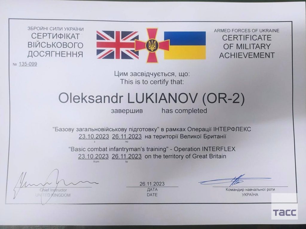 Эпизоды сняты в ходе вручения сертификатов о прохождении спецкурса в рамках операции Interflex. Есть также фото одного из сертификатов за подписью британского шеф-инструктора и командира учебной роты Украины.