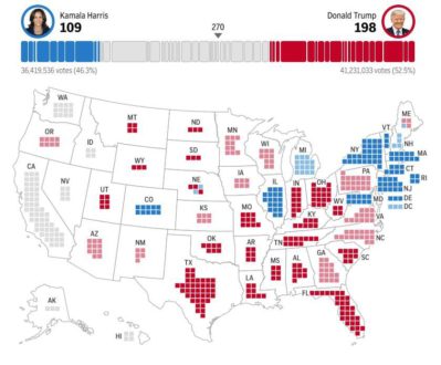Ранее мы писали, что республиканец сократил разрыв в ключевом штате Пенсильвания, набирая 36,0% против 63,2% у Харрис.