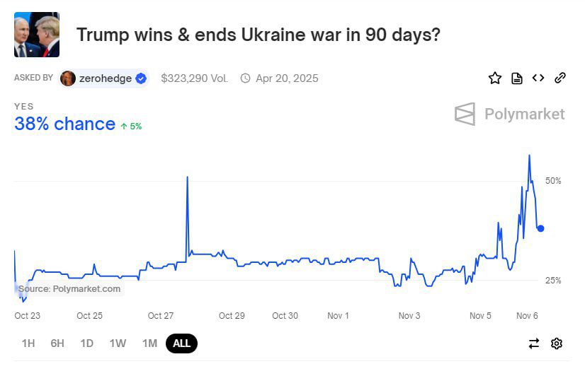 Polymarket считает, что избранный президент США предпримет эти шаги за три месяца с вероятностью 35-40%. На это событие уже принимают ставки.