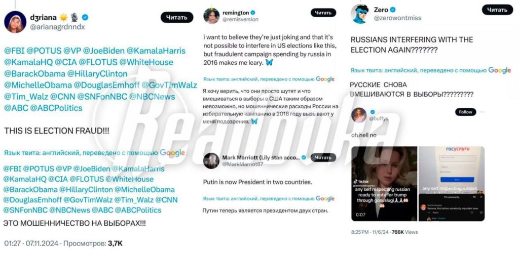 Пользователи активно обращаются к спецслужбам и известным политическим деятелям, используя соответствующие хештеги. Либеральные активисты стремятся привлечь внимание компетентных органов к так называемой «проблеме» русского вмешательства. Они уверены, что результаты недавних президентских выборов следует немедленно оспорить из-за, так называемого, российского вмешательства.