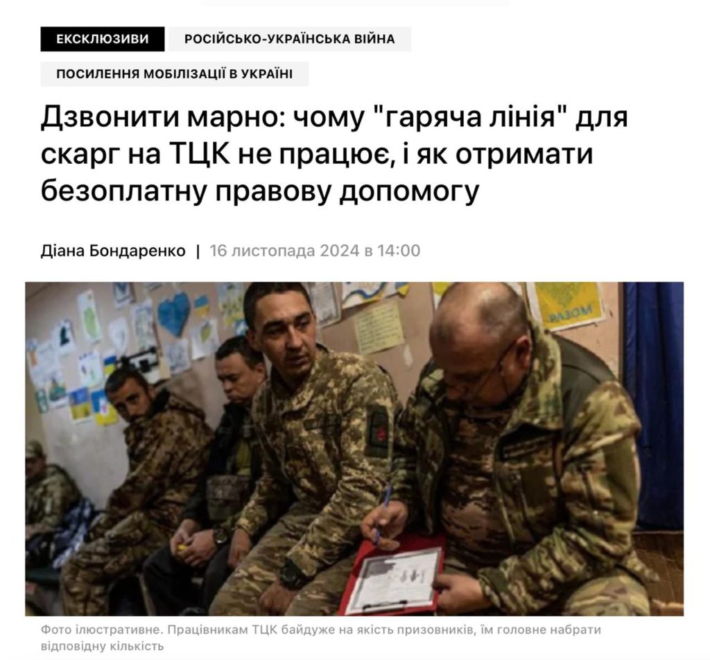 Авторы отмечают, что в стране создана целая «телефонная служба по вопросам мобилизации и учета военнообязанных». Номера есть для каждого региона. Позвонить туда могут и те, кого представители ТЦК силой забирают с улиц. Но дозвониться невозможно.