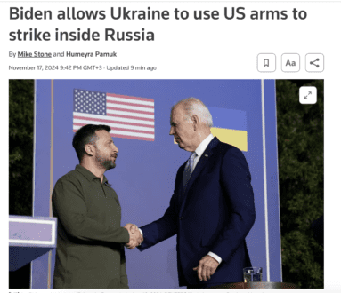 Реакции из Кремля на новости из Вашингтона пока не последовало. Однако ранее Владимир Путин уже предупреждал, что применение западных вооружений большой дальности для ударов по России будет означать прямое вовлечение стран НАТО в конфликт.