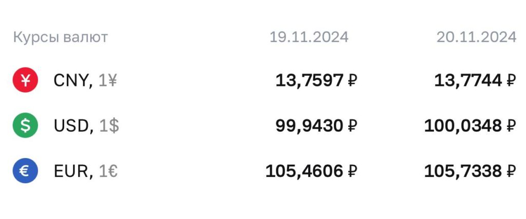 С 20 ноября Центральный банк России увеличил официальный курс доллара США на 9,18 копейки — до 100,0348 рубля.