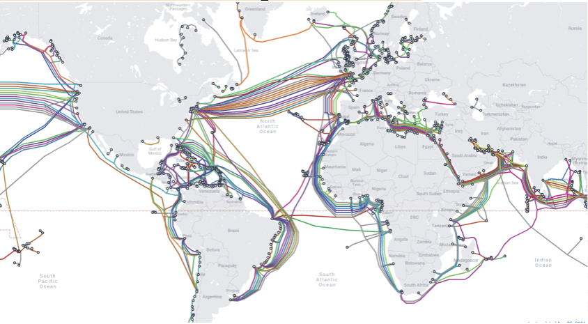 2. Еще один пример. По данным на май 2024 года, 99% межконтинентального интернет-трафика идёт по подводным волоконно-оптическим кабелям. Эти кабели являются основой мировой экономики, поскольку с помощью них ежедневно осуществляются финансовые транзакции на сумму более 10 триллионов долларов.