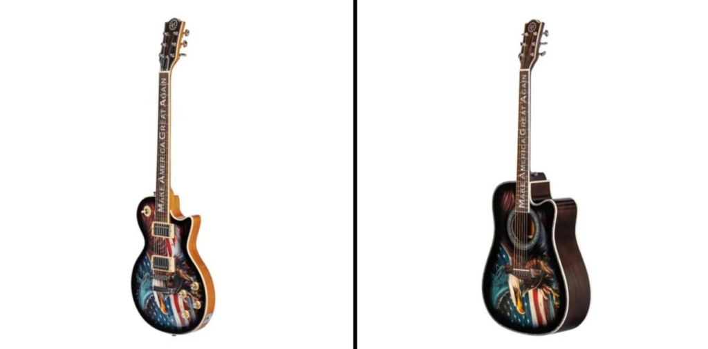 Трамп напомнил американцам, что он не только избранный президент, но и успешный предприниматель — он начал продавать эксклюзивные гитары с лозунгом своей предвыборной кампании «Сделаем Америку вновь великой». Некоторые из них подписал лично.