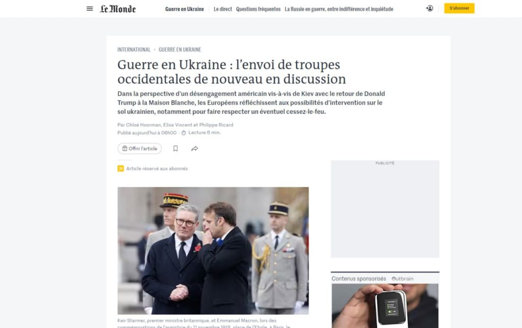 Страны Запада возобновили обсуждения отправки своих войск или бойцов частных военных компаний (ЧВК) на Украину. Об этом сообщает французская газета Le Monde со ссылкой на источники.