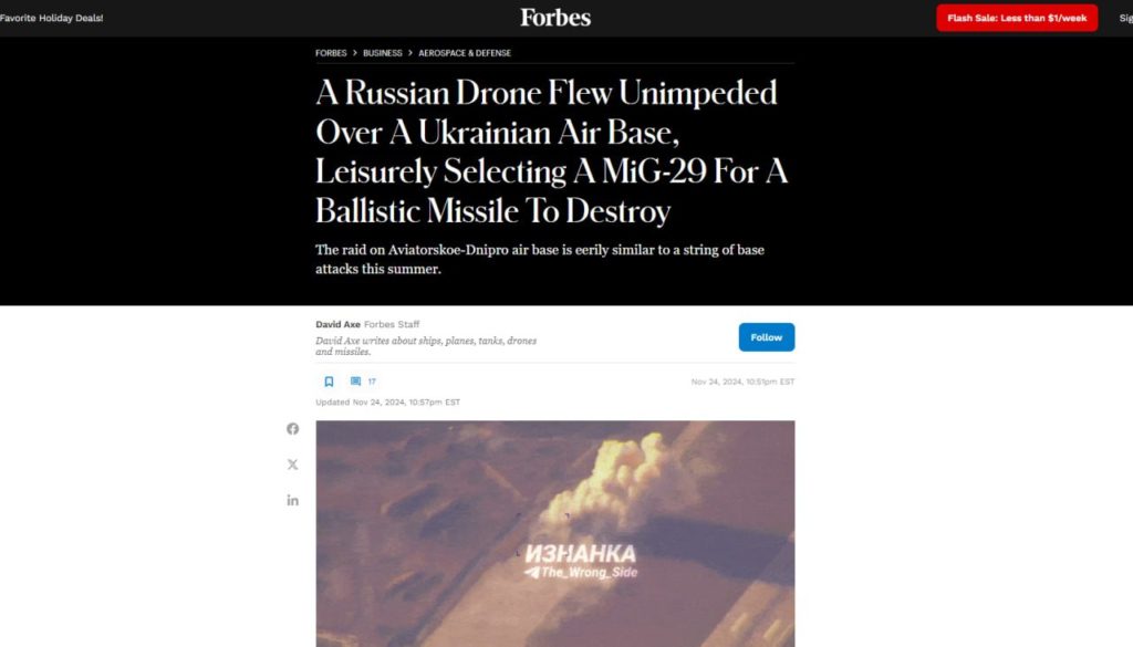 «Рейд на аэродром Авиаторское-Днепр напоминает цепочку ударов по базам летом. Украина не способна полностью защититься, несмотря на поставки сотен систем ПВО от союзников», — сказал он.