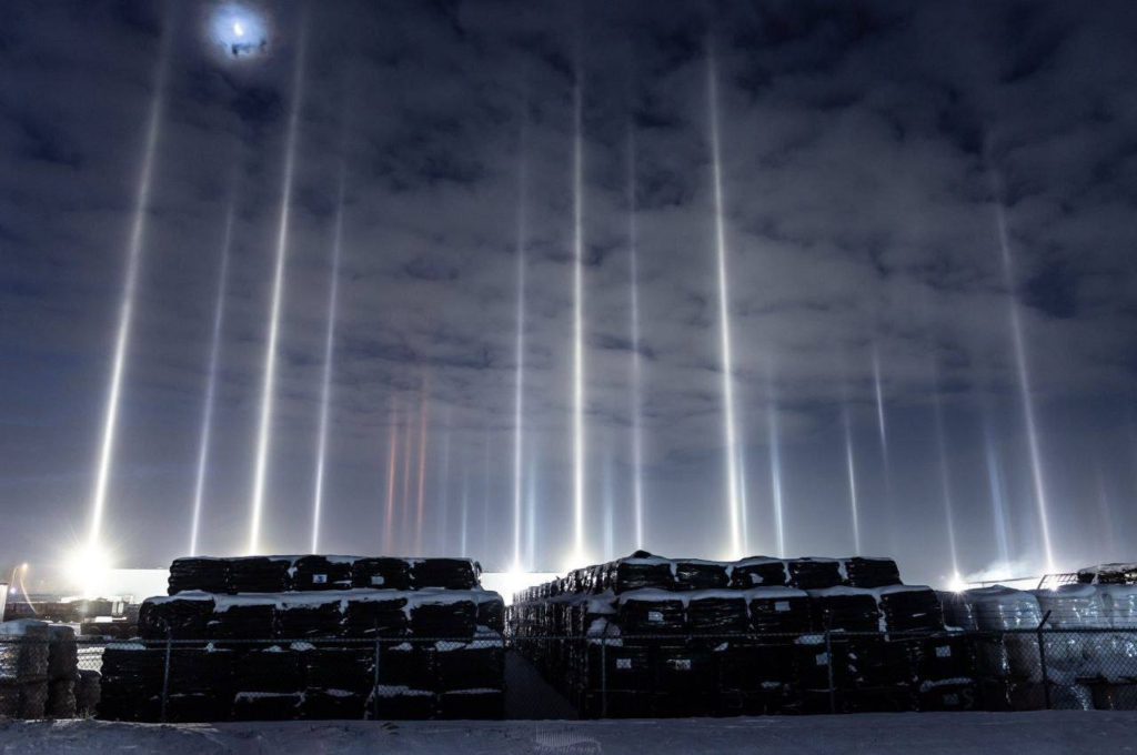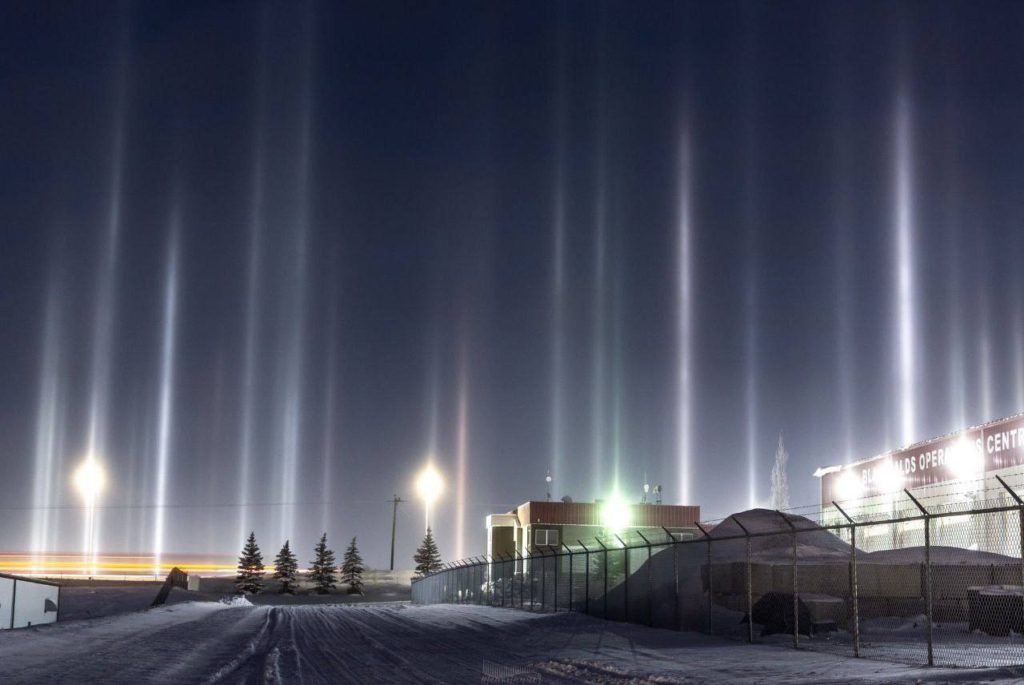 Утром в канадской Альберте эксперты запечатлели удивительные световые столбы. Они появляются, когда температура на улице опускается ниже -30°C.