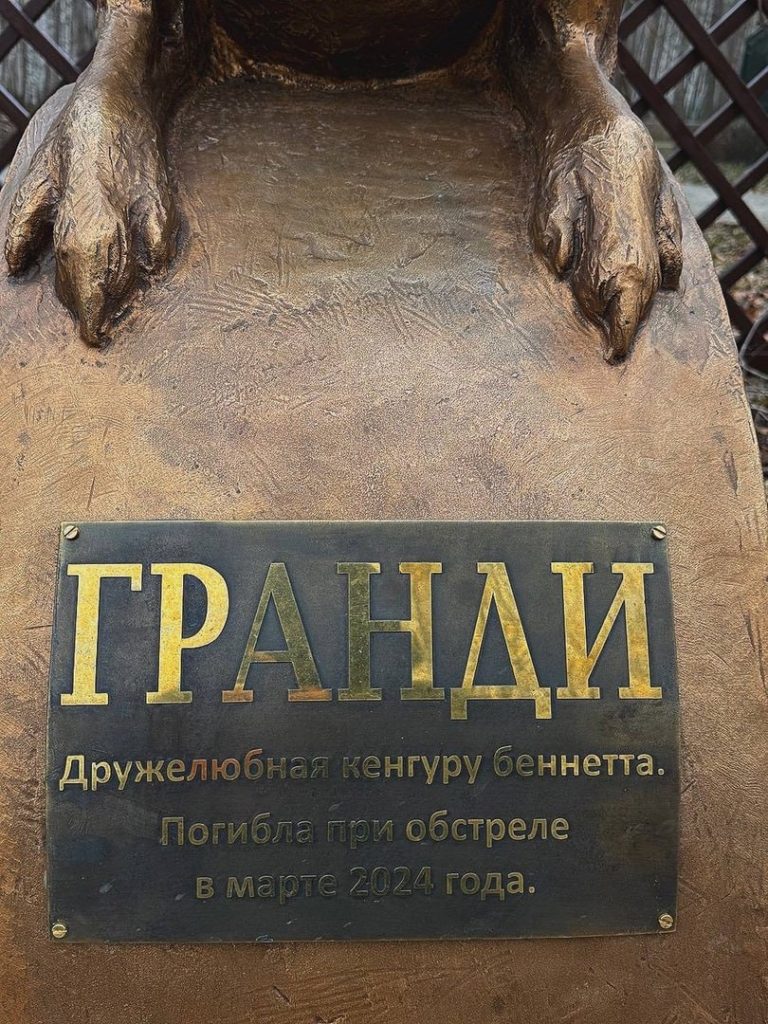 Памятник был установлен в честь кенгуру Беннетта по имени Гранди, которая погибла в марте этого года во время обстрела. Об этом сообщила пресс-служба Белгородского зоопарка.