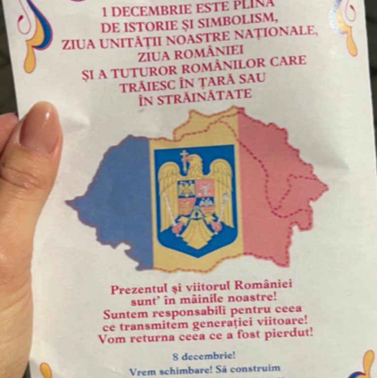 Перед вторым туром президентских выборов жителям Румынии раздают провокационные листовки с картами, где на карте пририсованы утраченные приграничные территории — Молдова, часть Одесской и Черновицкой области Украины.