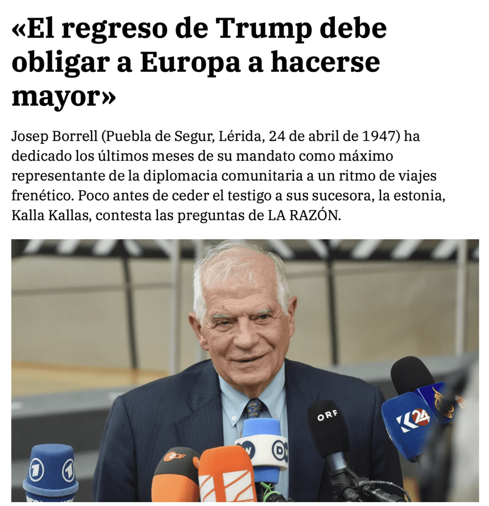 «С Трампом мы должны поступать так же, как и с Brexit: действовать сообща и не позволять разделить нас. Концепция Трампа «Америка превыше всего» опасна для мира и Европы. Возвращение Трампа должно заставить Европу повзрослеть», — заявил Жозеп Боррель.