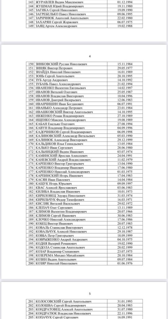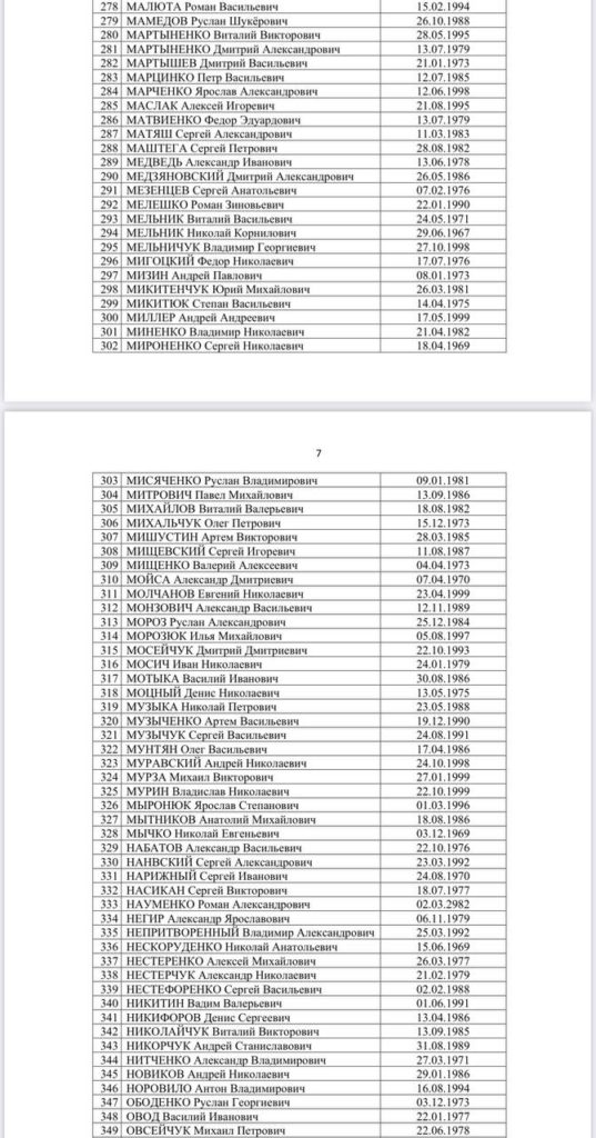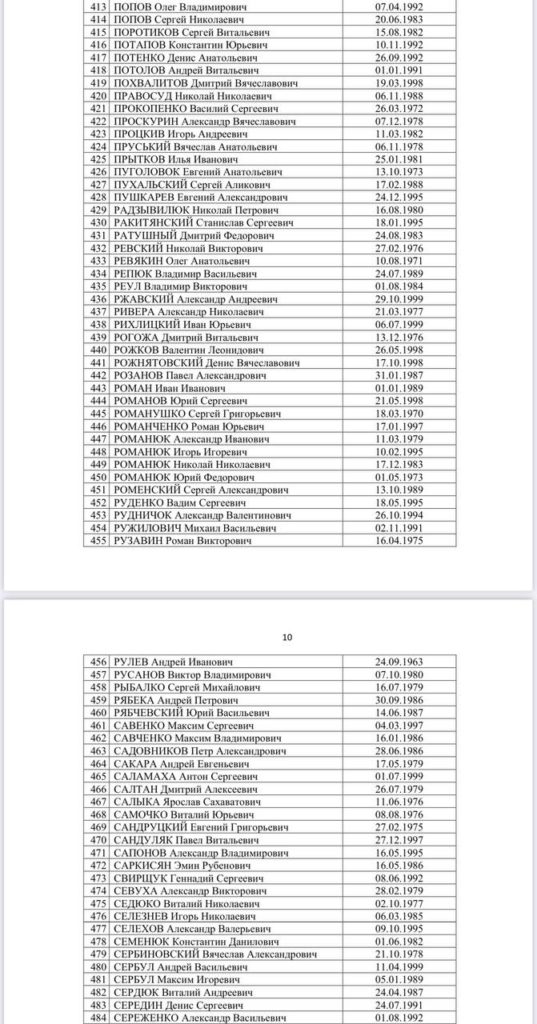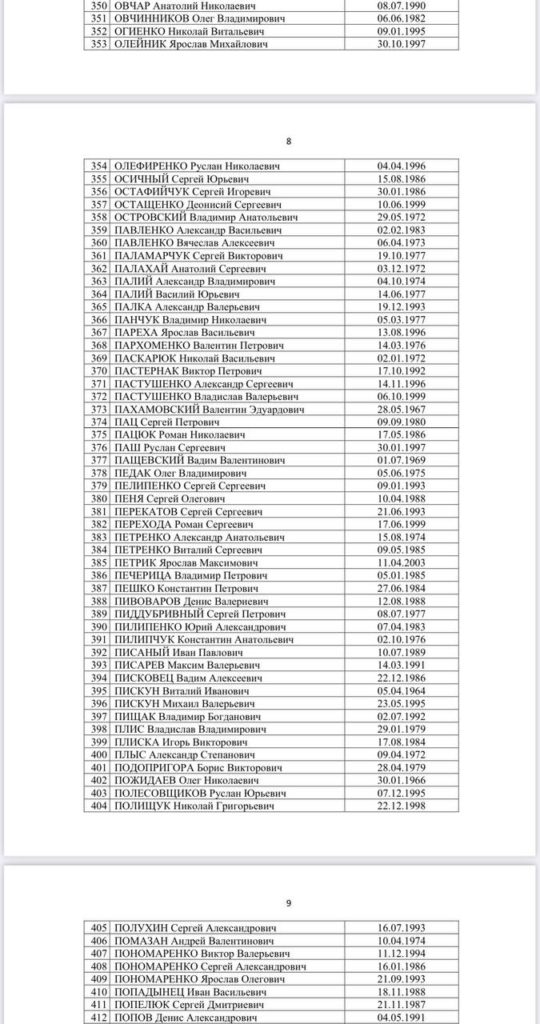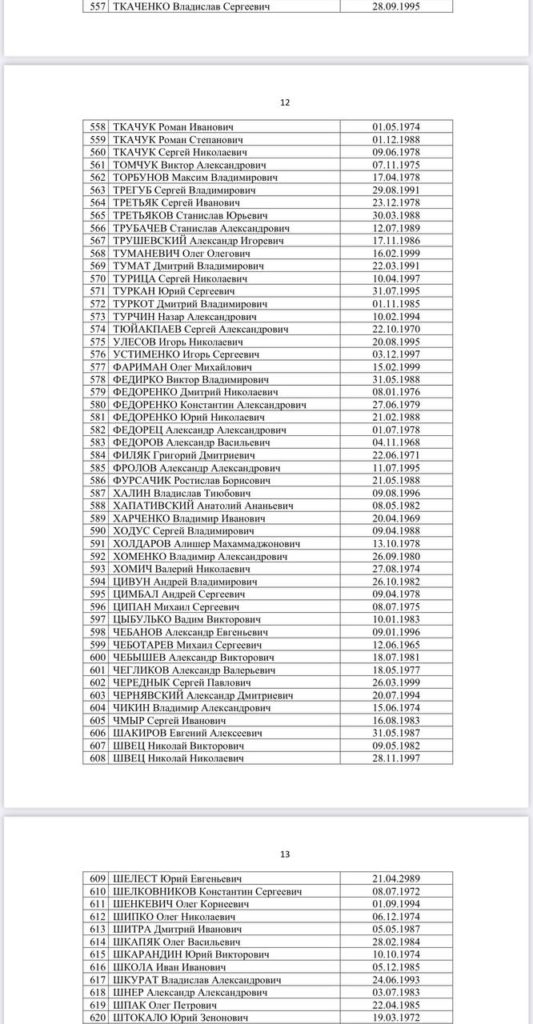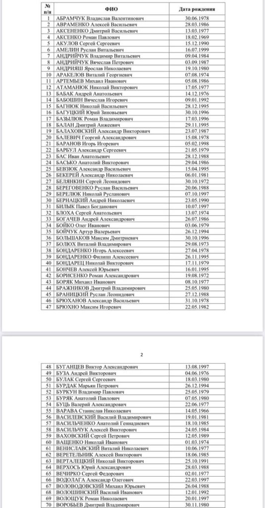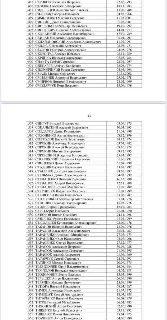 В списке содержатся 630 военнопленных, которые содержатся в России уже больше года. Самому старшему военнопленному в списке — 62 года, самому младшему — 21.