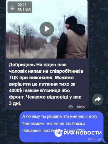 Из переписки известно, что мужа сестры представители украинского военкомата пытались схватить при выходе из дома, но мужчина все же смог убежать.