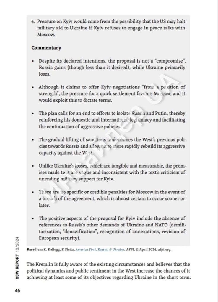- Отсрочка вступления Украины в НАТО на 10 лет и разрешение России сохранить контроль над освобожденными территориями. Постепенное снятие санкций и нормализация отношений с США при условии достижения приемлемых для Украины мирных соглашений.