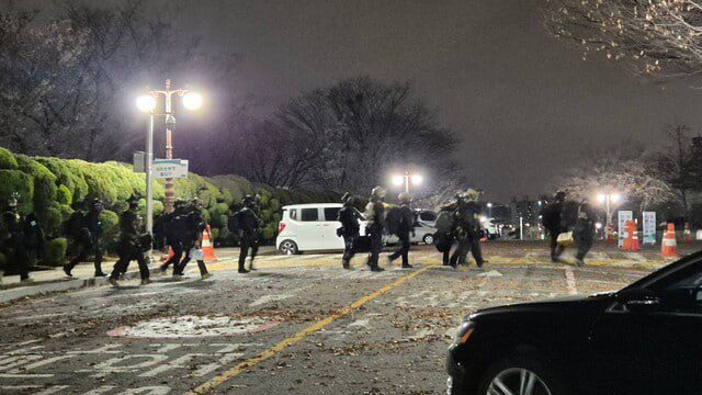 Войска командования военным положением в Южной Корее пытаются проникнуть в здание парламента, передает агентство Yonhap.