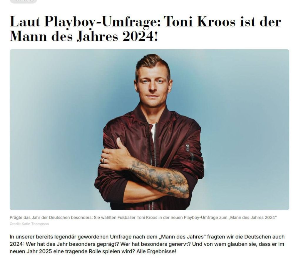 По их мнению, самый выдающийся мужчина года в Германии — это Тони Кроос (ведущий полузащитник мадридского «Реала» и сборной Германии по футболу).