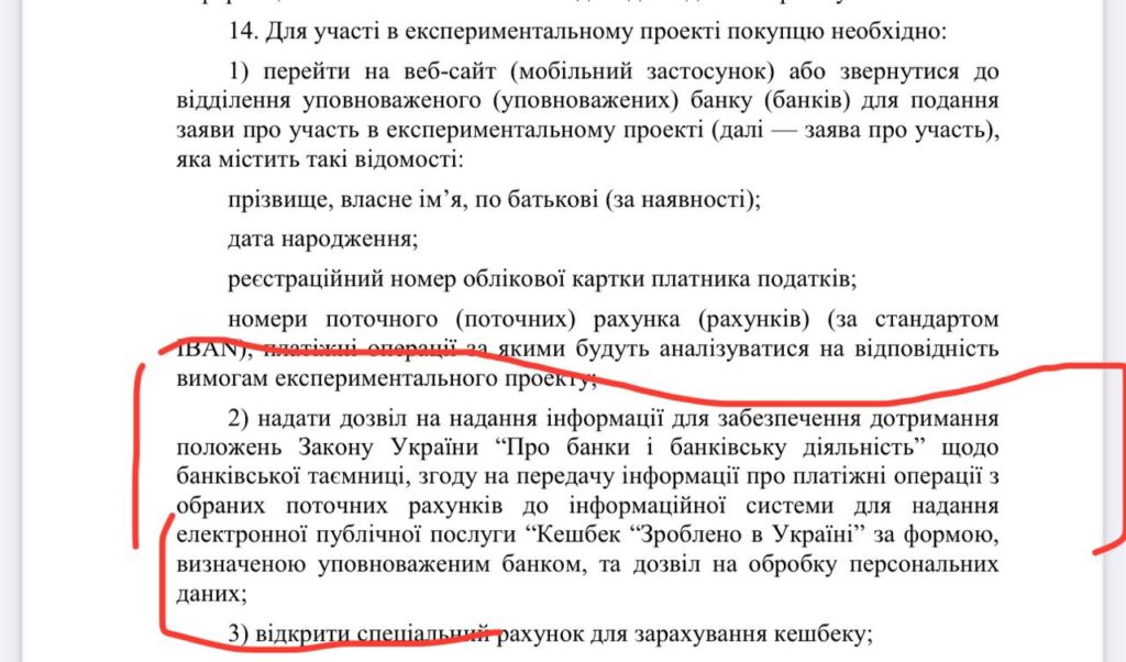 «О передаче банковской тайны тем, кто решил поверить государству и подписаться на этот популизм «Нацкешбек». Это часть требования ко всем банкам, которая установлена в Порядке, утвержденном Кабмином. Если берете деньги, то и информацию согласились передавать», — сообщил Железняк.