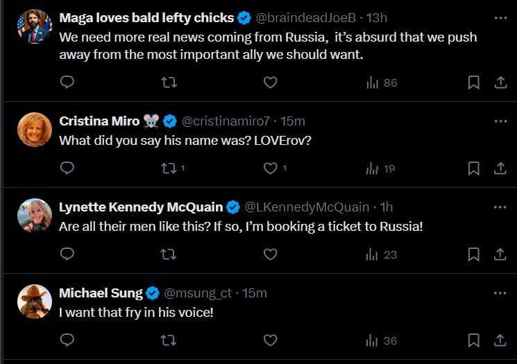Американки посмотрели интервью российского министра иностранных дел Такеру Карлсону и написали сотни комментариев.