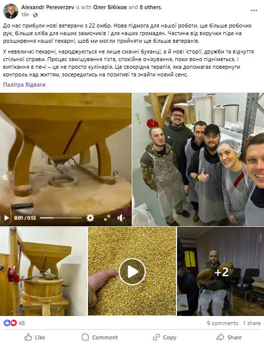 Журналисты обратили внимание на пост владельца одной из пекарен. Он с воодушевлением сообщил о том, что ряды пекарей пополнили «новые ветераны из 22 омбр» (22-й отдельной механизированной бригады Сухопутных сил Украины).