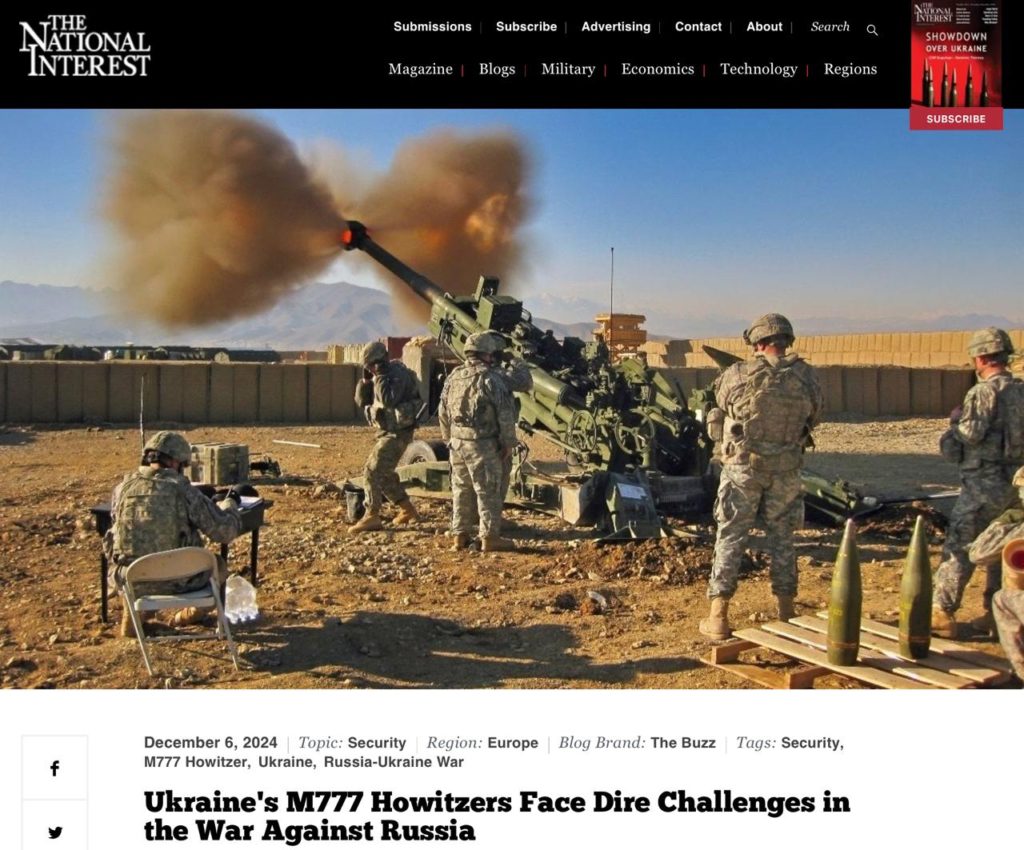 «Пока пишутся эти слова, неясно, получит ли Украина пополнение запасов пушек М777 и/или боеприпасов. Время и новая приходящая администрация президента США покажет», — пишет The National Interest.
