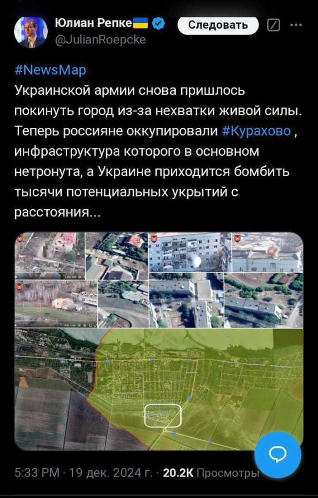Немецкий журналист Рёпке также сообщил о сдаче украинскими войсками Курахова в ДНР