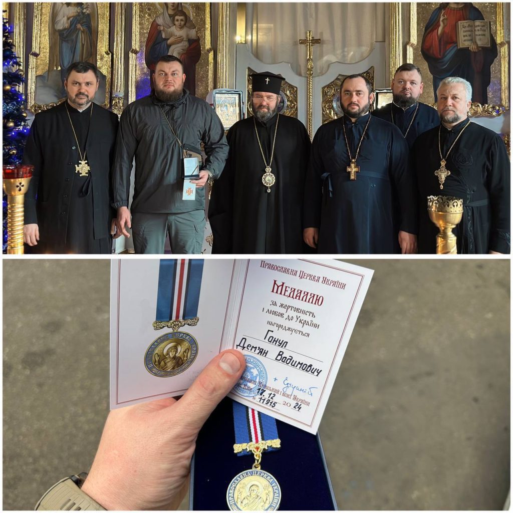 Украинский националист Демьян Ганул* получил из рук ряженых «священнослужителей» из так называемой ПЦУ медаль и удостоверение «За жертвенность и любовь».