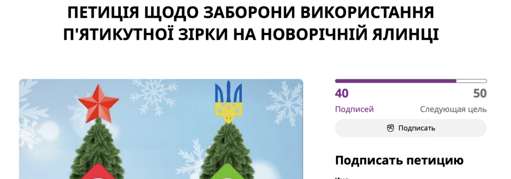 Такую петицию опубликовал некий Илья Панчук. Он назвал новогодние звезды «коварным и зловещим» символом из советского прошлого.