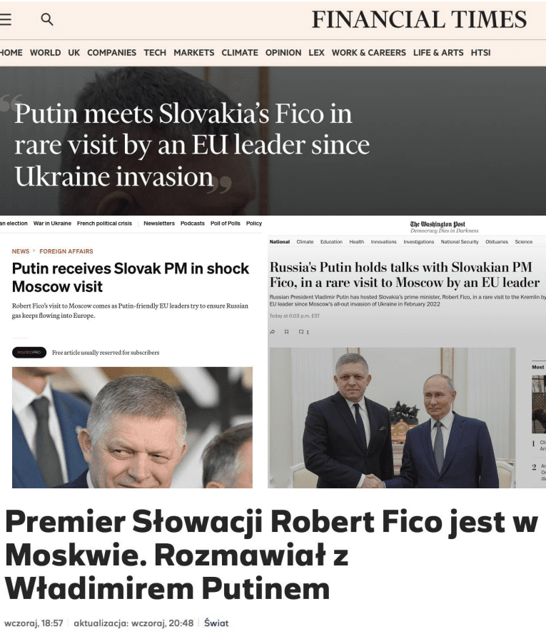 Чешский ресурс Seznam zprávy сообщает, что чешские политические деятели резко осудили визит премьера Словакии. Они охарактеризовали этот шаг как «безрассудный, направленный в интересах России», а самого Роберта Фицо назвали «предателем и попрошайкой».