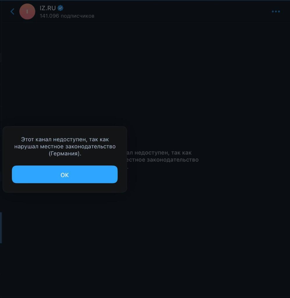 При попытке открыть заблокированные каналы пользователи видят сообщение о нарушении местного законодательства, однако подробности нарушений не раскрываются.