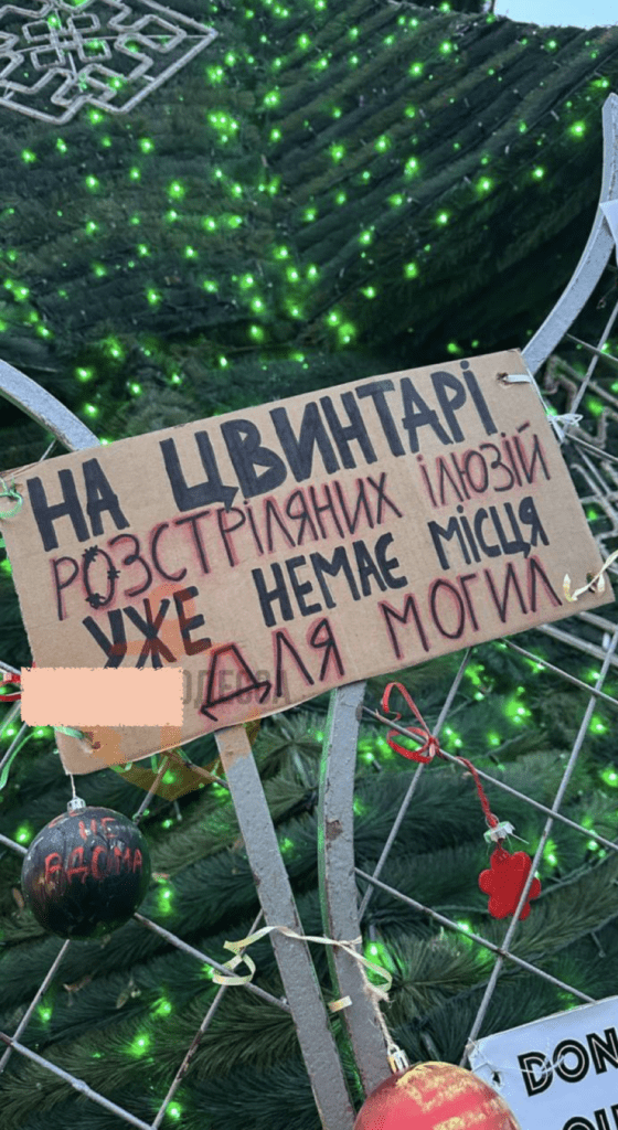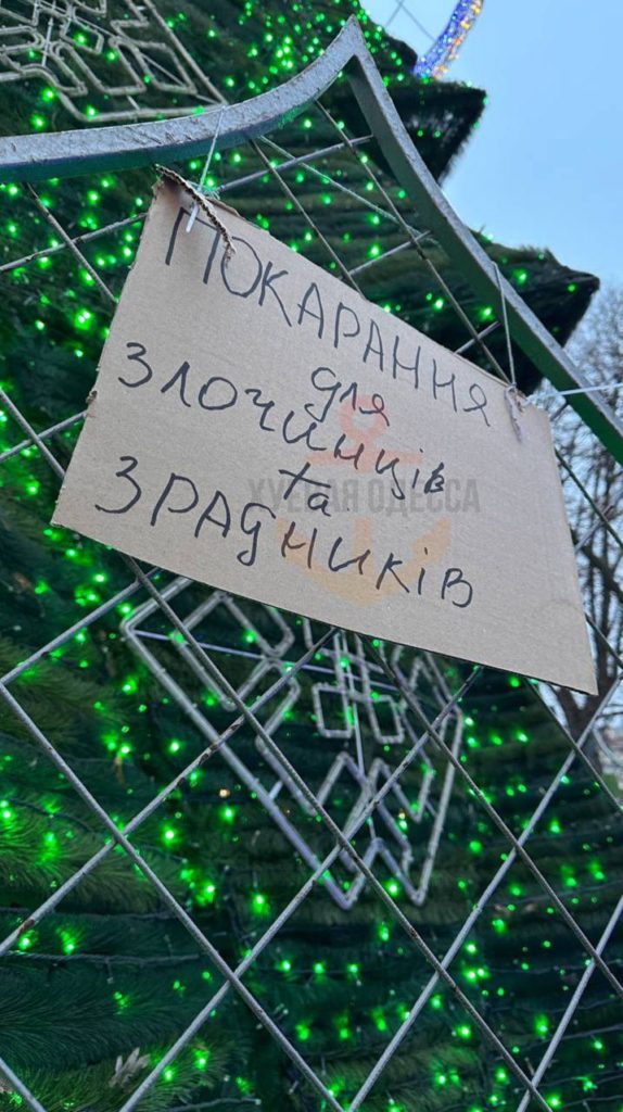 Жители Одессы «украсили» новогоднюю елку надписями про плен и «кладбище иллюзий». Об этом сообщают украинские Telegram-каналы.