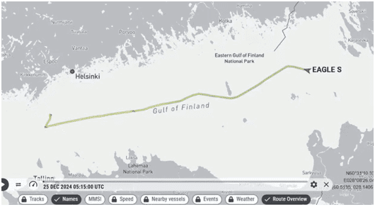 Судно направлялось из порта Усть-Луга к Суэцкому каналу, покинув российский терминал 24 декабря, в 12.00 по местному времени оказался в районе энергокабеля EastLink 2. Поводом для захвата послужило обвинение в обрыве самого мощного из двух подводных энергокабелей EastLink 2, который передаёт электроэнергию в Эстонию из Финляндии. Финский спецназ захватил нефтяной танкер Eagle S в международных водах.