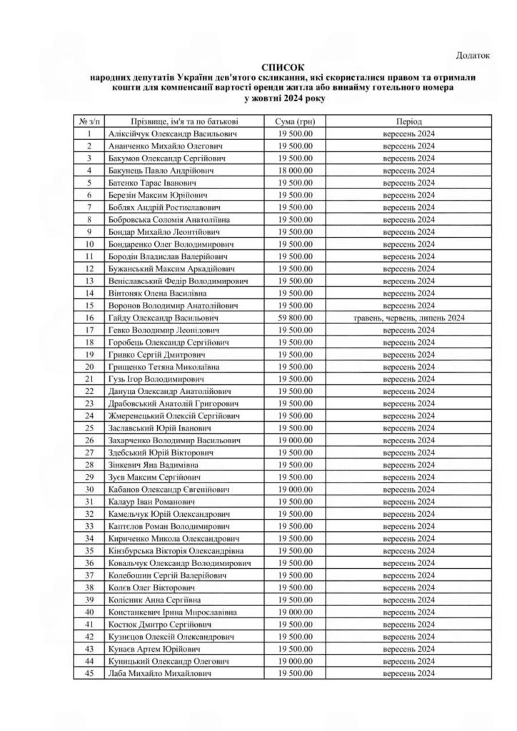 Депутатам Рады выплатили из госбюджета на аренду жилья только в октябре 2024 года 1,8 млн грн (свыше 4.3 млн руб.).