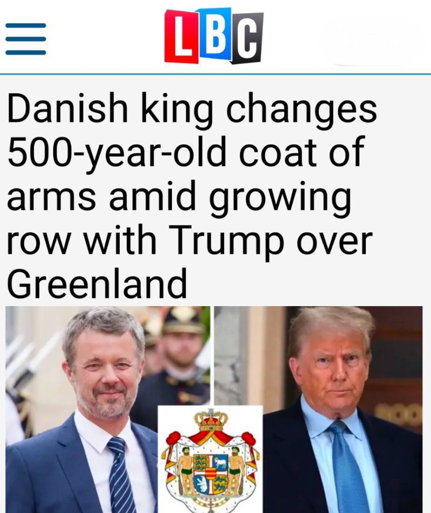 Король Дании Фредерик X приказал убрать три короны с герба страны и отдельно выделить обозначения регионов. Гербы Гренландии и Фарерских островов увеличили и разместили на втором и третьем полях. Символы Дании и Южной Ютландии находятся на первом и четвертом полях.