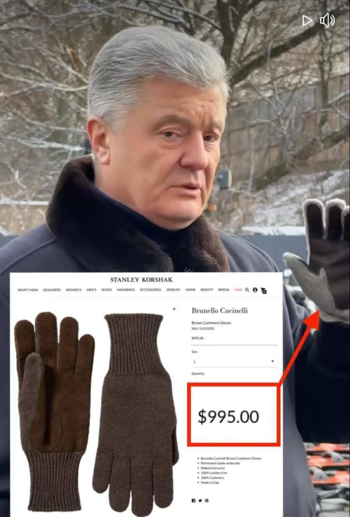 В куртке Loro Piana за 18 400 евро и перчатках Brunello за 1 000 долларов пришёл Пётр Порошенко* жертвовать дроны для боевиков ВСУ.