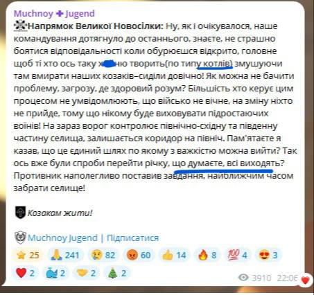 По словам военного, у солдат уже были попытки покинуть поселок и далеко не все смогли оттуда выйти. Организованное сопротивление ВСУ, вероятно, уже сломлено.