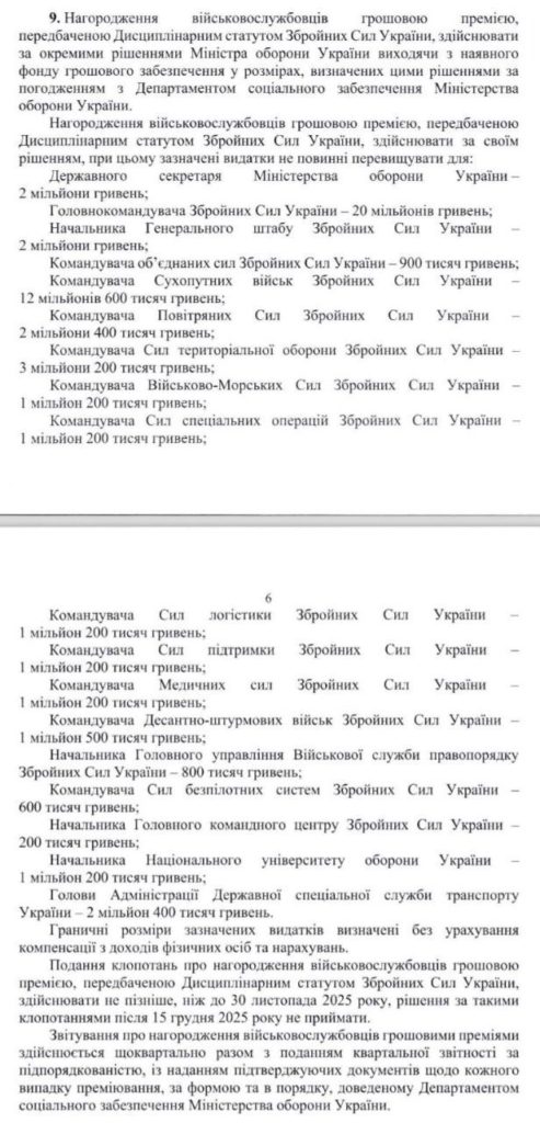 Она опубликовала список с лимитами денежных премий на 2025 год, предусмотренными Дисциплинарным уставом Вооруженных Сил Украины.