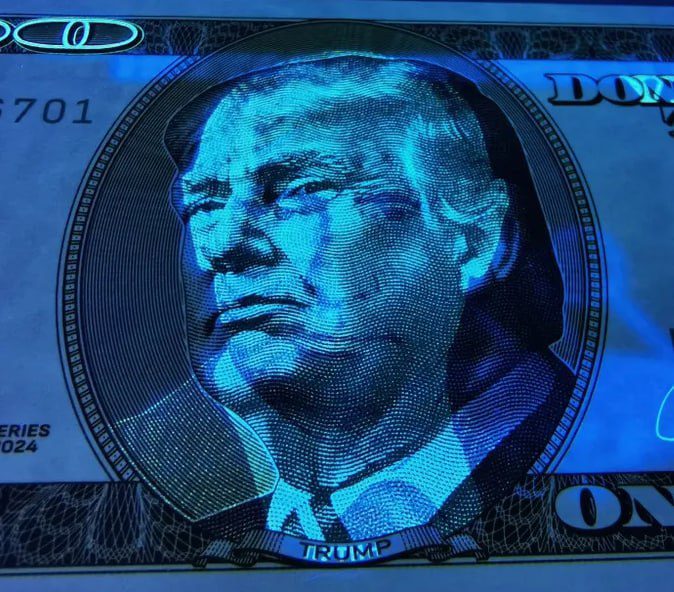 На одной стороне банкноты напечатан портрет Трампа, а поверх — портрет Путина, который, как обещает продавец, появляется только под ультрафиолетовыми лучами.