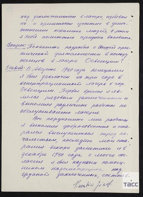 ФСБ России опубликовала новые архивные документы, содержащие подробности жестоких истязательств и зверских убийств ни в чем не повинных заключенных лагеря смерти Освенцим.